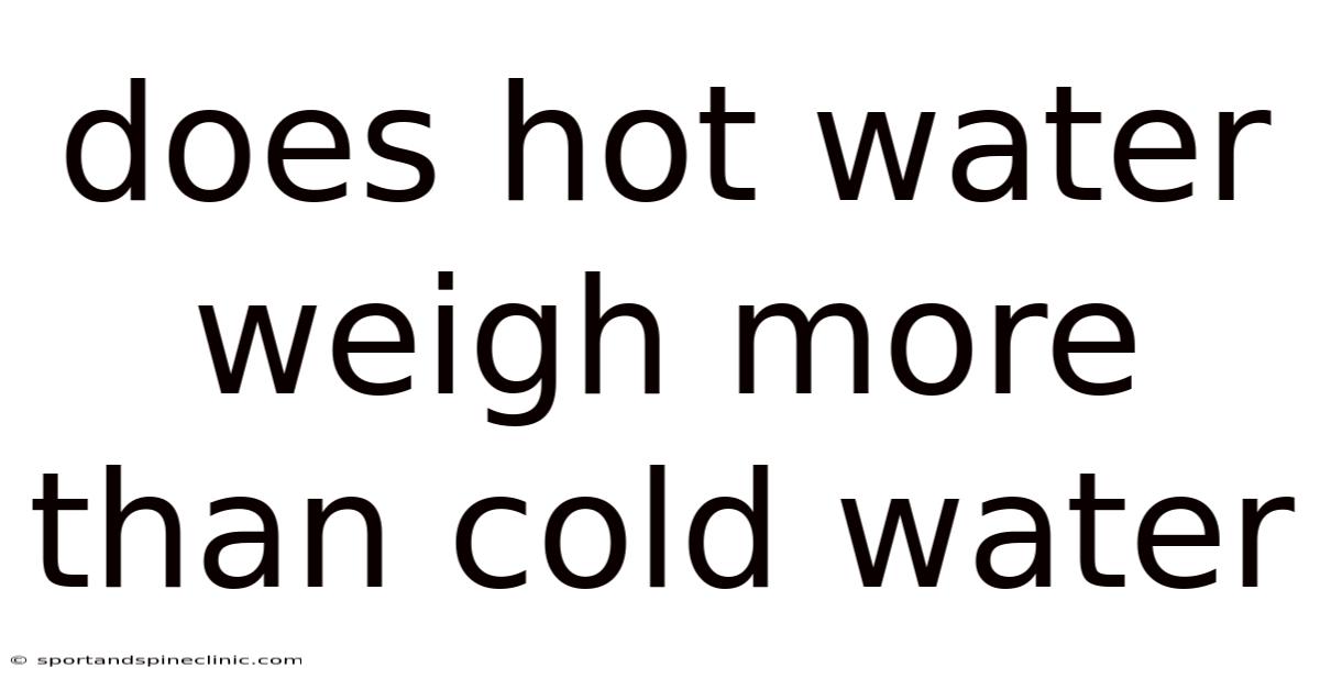 Pulling it all together, the question of whether hot or cold water weighs more is not as straightforward as it might seem. This phenomenon, rooted in the principles of thermal expansion and molecular behavior, has far-reaching implications in science, industry, and nature. Because of that, while the weight of water is determined by its mass and the force of gravity, its density—and thus its mass per unit volume—changes with temperature. Hot water, being less dense, weighs less than cold water when measured by volume. Understanding these nuances not only deepens our appreciation of water's unique properties but also highlights the detailed connections between temperature, density, and weight.