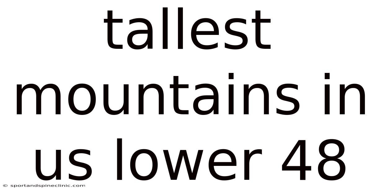 The tallest mountains in the US lower 48 are concentrated primarily in three major mountain ranges: the Sierra Nevada in California, the Cascade Range in Washington and Oregon, and the Rocky Mountains in Colorado. Here are the top ten peaks ranked by elevation: